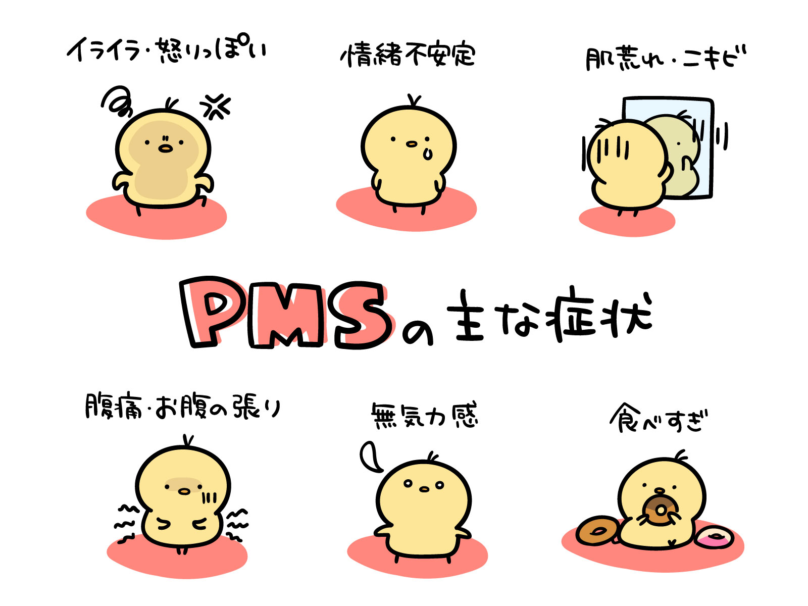 月経前症候群(PMS)とは毎月、生理の前(7日から10日)に体と精神のバランスが不安定になる症状です。